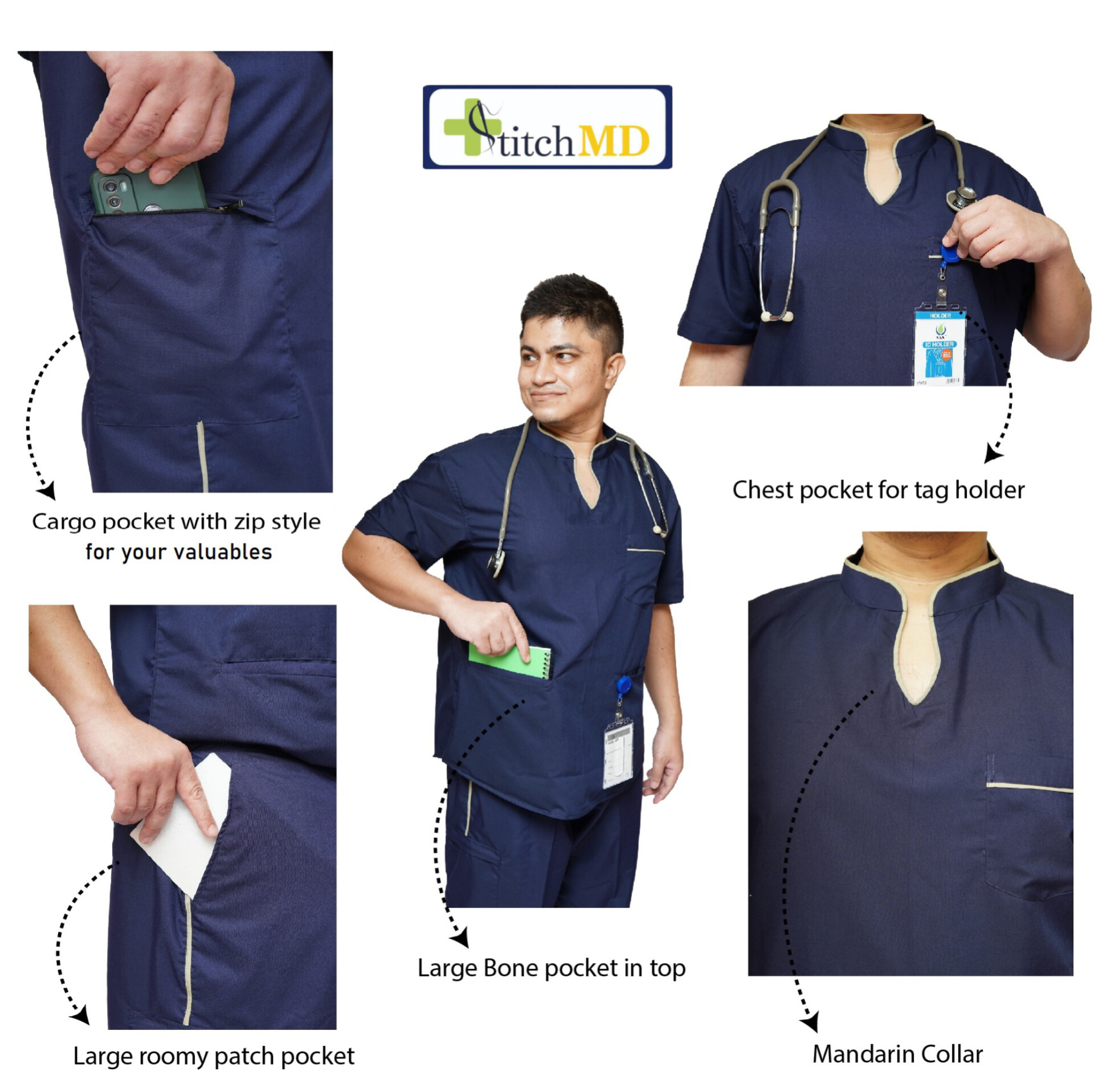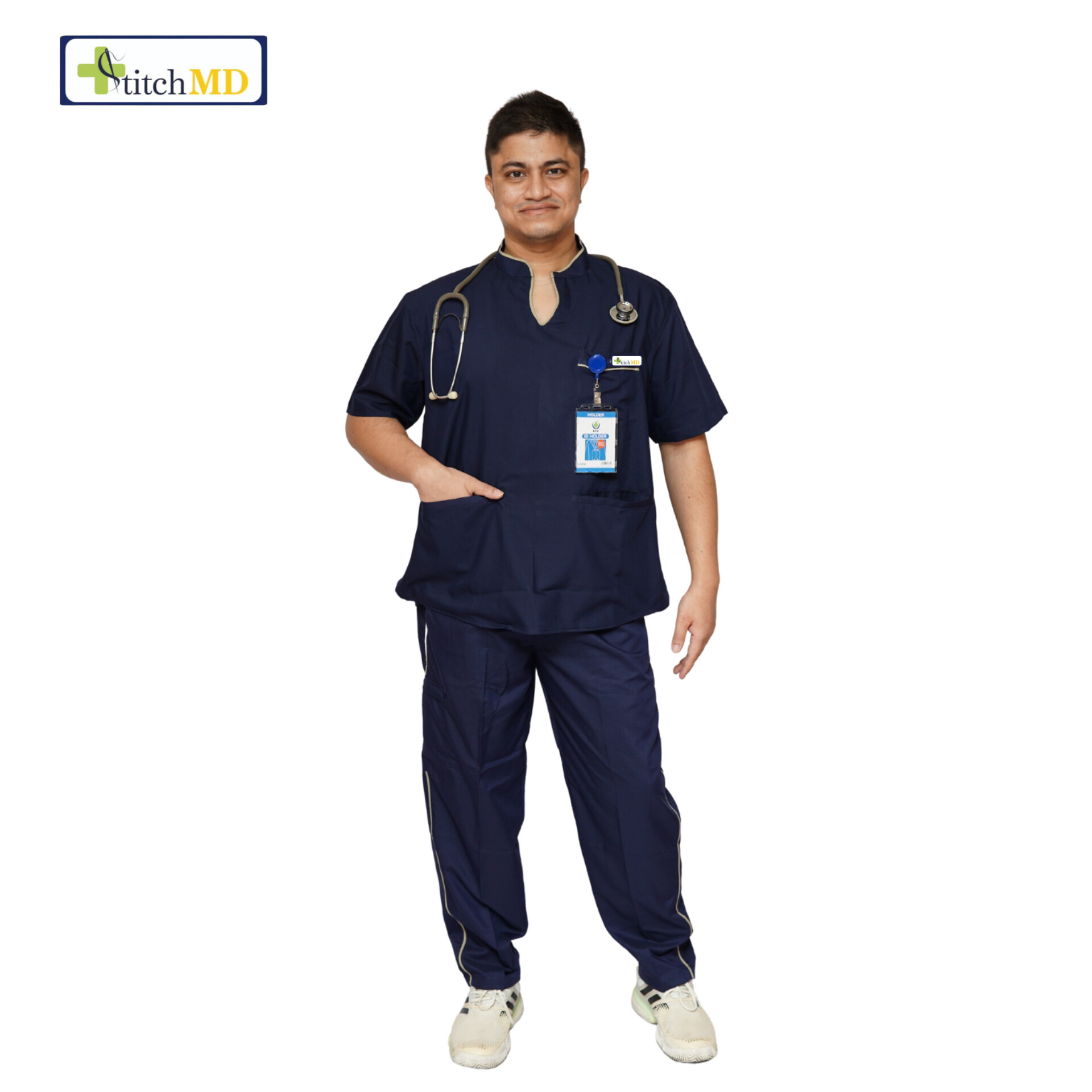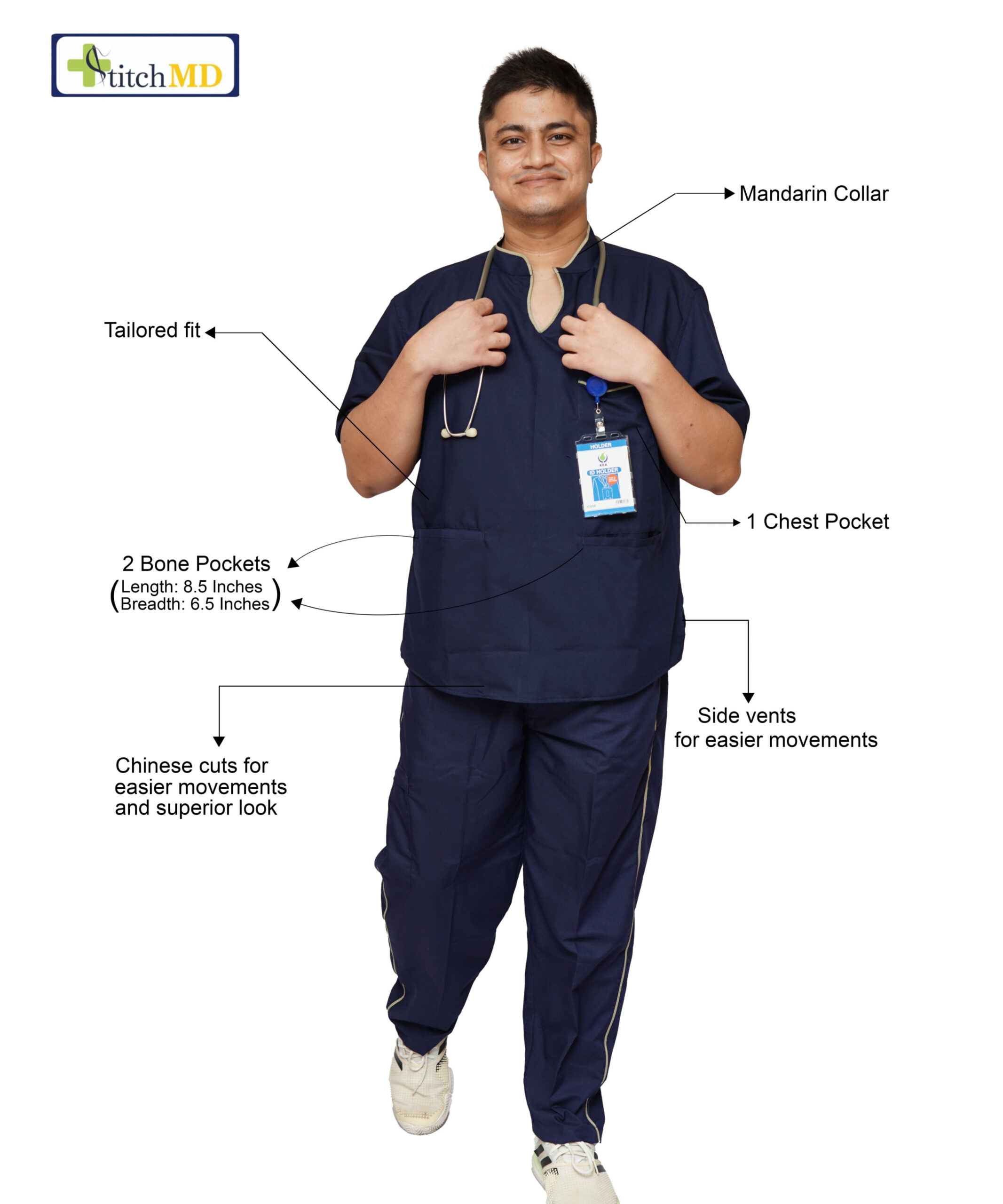StitchMD Prima Men’s designer Scrub suit in Mandarin collar with 7 pockets |Navy Blue|