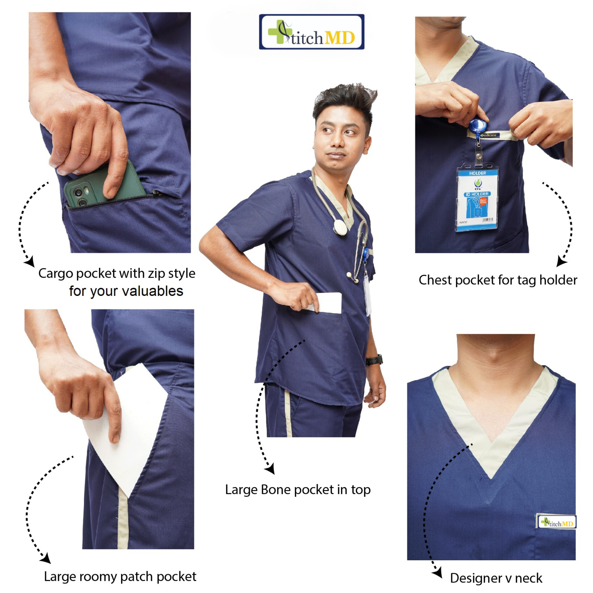 Looking for the perfect scrub set for your next hospital shift? Look no further than our comfortable and stylish Hospital designer Scrubs for Men. Made from high-quality materials, these scrubs are designed to keep you comfortable and looking great all day long. Our scrubs come in a variety of colors and styles to fit your personal taste and professional needs. Our scrubs are also functional and practical, with plenty of pockets to store all your necessary tools and equipment. Order your Hospital Scrubs for men today and experience the perfect combination of comfort and style on your next shift!