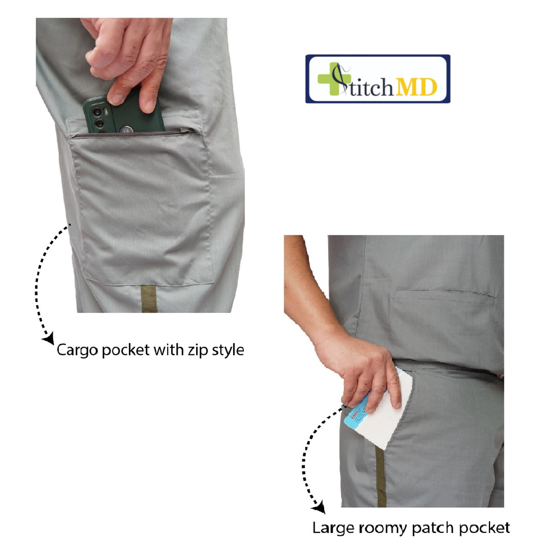 StitchMD  Men’s Designer Scrub pant with 4 pockets-Dark Grey