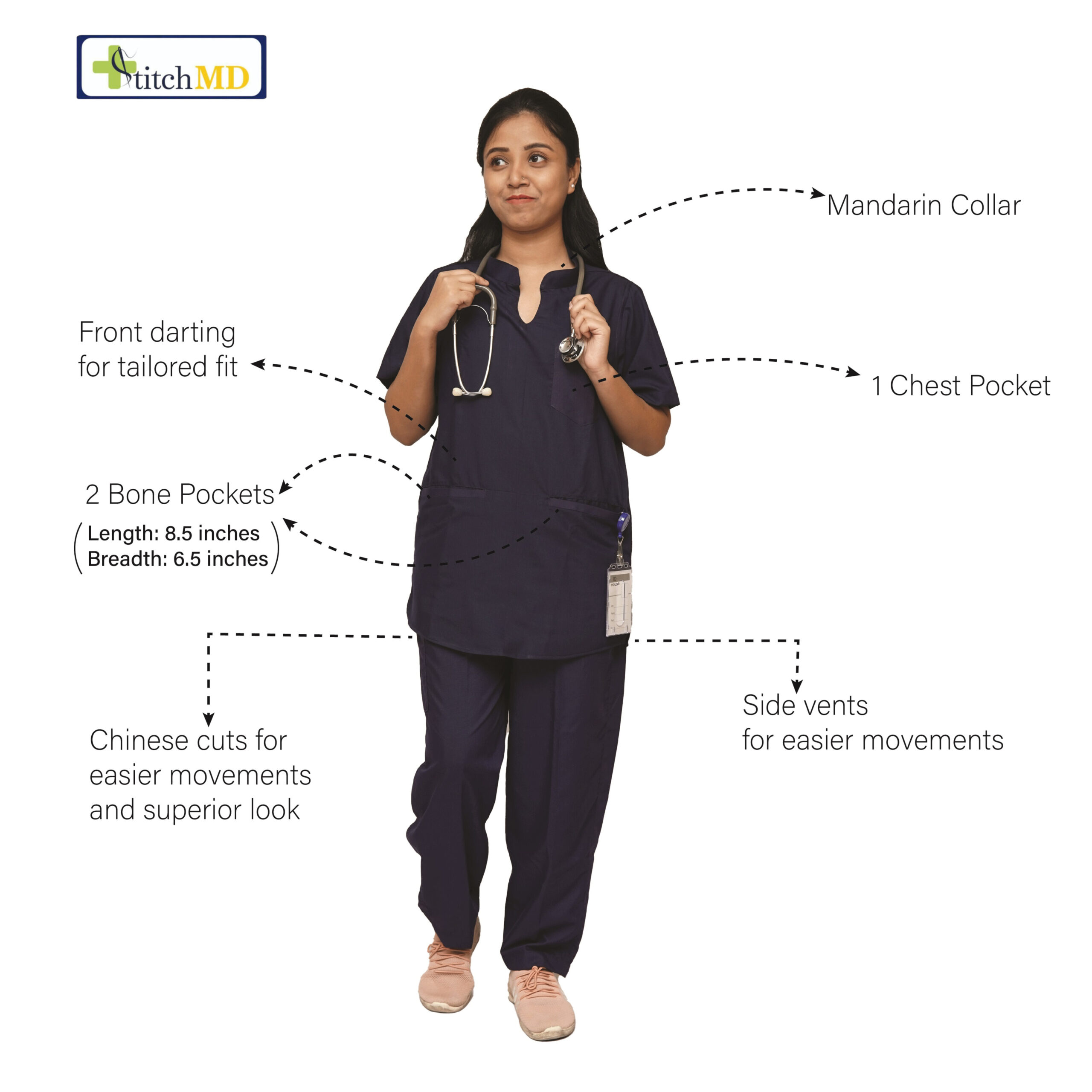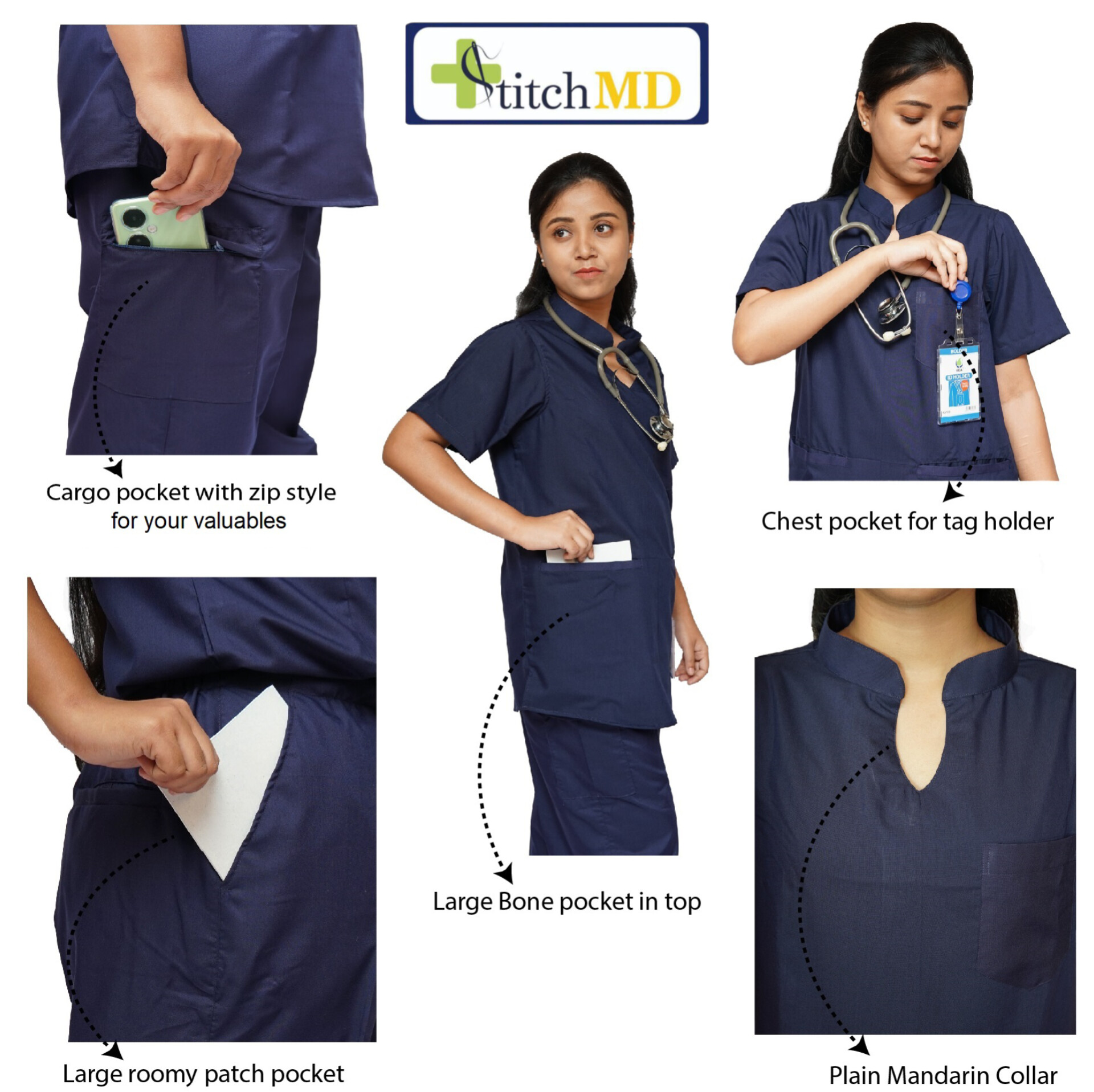 the epitome of timeless charm and unbeatable functionality. Designed for the modern healthcare professional, this classic scrub suit combines elegance and practicality to keep you comfortable and exceptionally organized throughout your demanding day.
